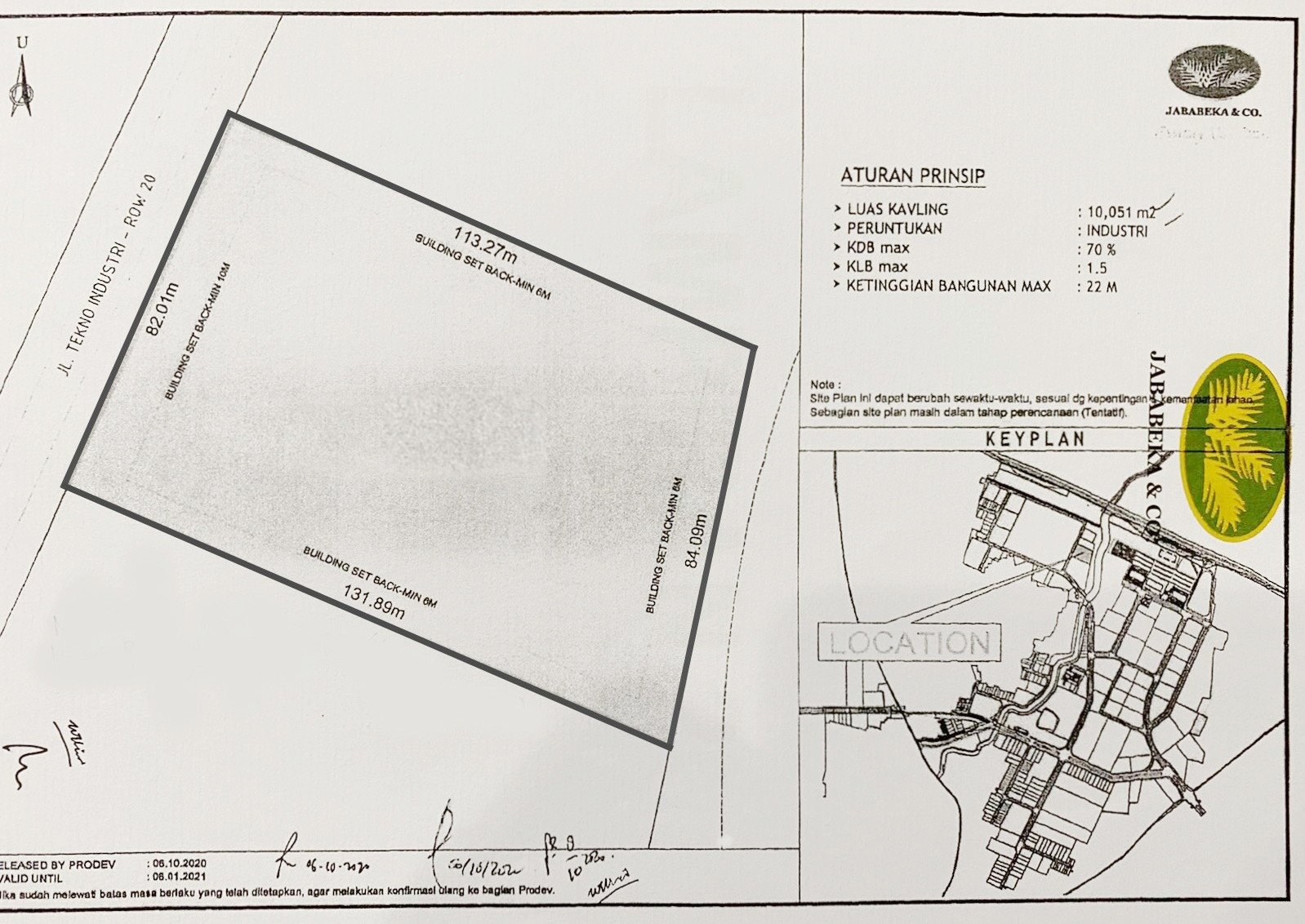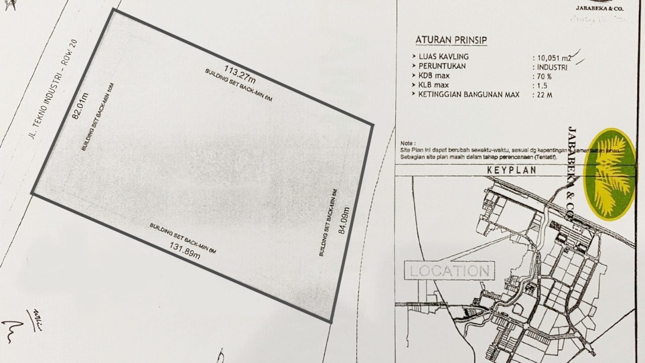 Dijual Tanah/Kavling Industri 1 ha di Kawasan Industri Jababeka 8 Cikarang