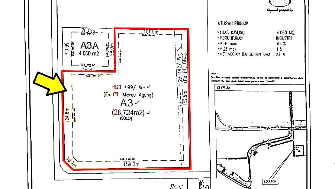 Dijual Kavling Industri Siap Bangun di Kawasan Industri Jababeka Cikarang. Lokasi strategis, dekat dengan pintu tol Cikarang Utara, cocok untuk dibangun pabrik, gudang, atau kebutuhan bangunan industri lainnya.